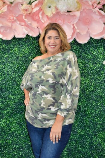 Plus/Mid Size Hacchi Green Camo Dolman Sleeve Top