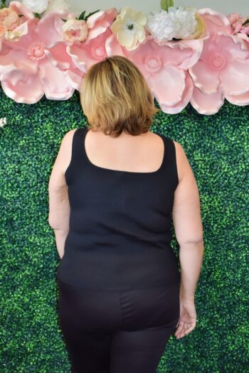 Solid Black Ribbed Knit Tank Top With White Yarn Trim & Tie Detail | Sizes S–3X | Boutique Women’s Sleeveless Top