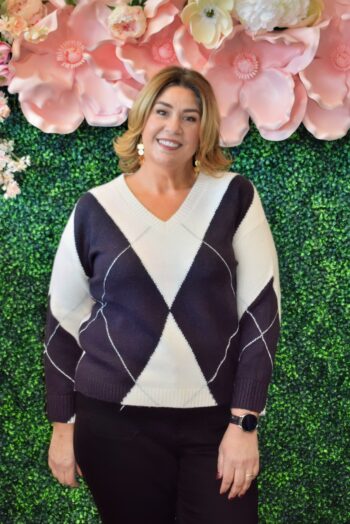 Aria Luxe Argyle Sweater for Plus Size Women – Cozy Soft Knit in Tan/White and Black/White | Sizes L–3X
