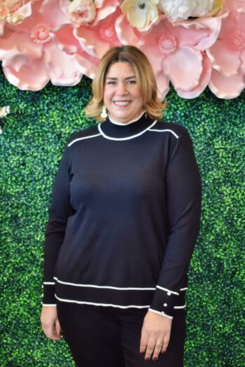 The Eleanor Luxe Piped Sweater – Black with White Trim | Sizes L–3X
