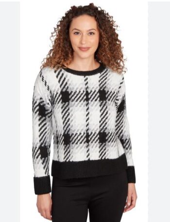 Black & White Glimmer Plaid Sweater with Silver Lurex Shimmer – Sizes L–3X