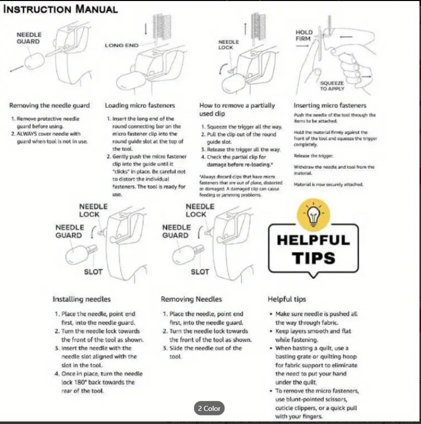 Designed with a refined fine needle and 500 black + 500 white micro fasteners, it’s perfect for delicate fabrics, crafts, and even quick household fixes. The ergonomic design makes it easy to use, while the durable ABS plastic body and stainless-steel needle ensure long-lasting performance.