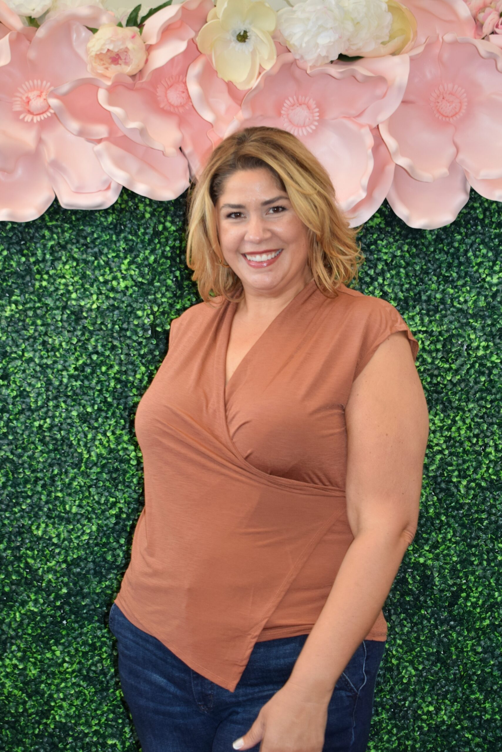 Meet the Dear Scarlett Surplice Top – a timeless wrap-style blouse designed for real women, real bodies, and real life. With its flattering crossover neckline and easy-drape hem, this rust-colored top highlights your curves without clinging, making it a customer favorite for both office days and casual outings.