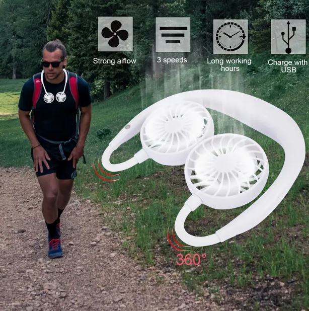 Featuring three customizable speeds, dual 360° adjustable fan heads, and soft silica gel arms, it delivers cool air exactly where you need it — no hands required. The lightweight wrap-around design fits comfortably around your neck and won’t tug on hair or clothing.